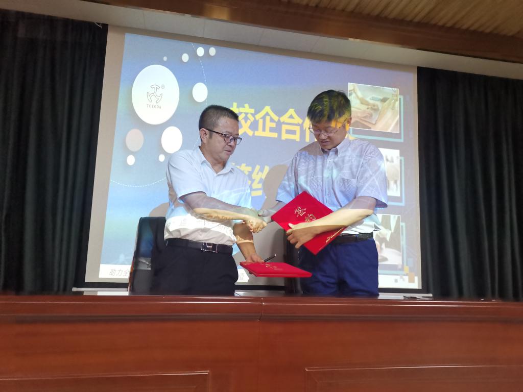 中科拓又达公司董事长赵欣表示,拓又达是一家专门从事工业机器人、伺服电机研发制造的高科技企业,机电工程系的工业机器人技术等专业非常符合公司的岗位需要,希望双方能在人才培养、合作办学、学生实习就业等方面开展更加深入的合作。最后,双方举行了校企合作签约仪式。此次深入企业调研和签订校企合作协议为机电工程系开设对接地方经济的特色专业提供了依据和指导,为校企合作、产教融合开辟了新局面。(撰稿:邓华军;初审:左伟平;编辑:杨盛钦;复审:曾卫平)
