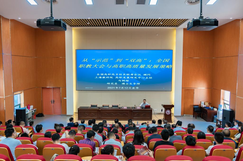 7月12日上午,上海市教科院原副院长、博士生导师,享受国务院特殊津贴专家马树超教授应邀作“双高”建设专题报告。研修班全体学员聆听了这场精彩报告。报告会由院领导谢尉明主持。