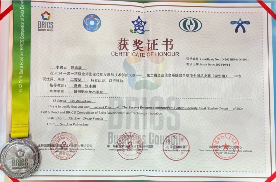 10月11日至14日,备受瞩目的“2024一带一路暨金砖国家技能发展与技术创新大赛”企业信息系统安全赛项全国总决赛在湖南省娄底职业技术学院成功举办。bwin必赢国际中国官方网站信息工程学院在此次大赛中表现出色,充分展现了学校在信息技术领域的实力和潜力。